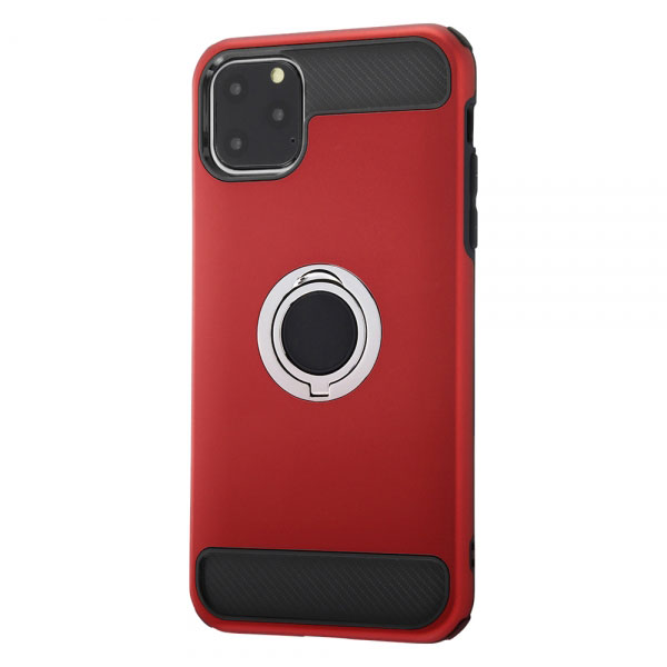 iPhone11 ケース ハードケース 耐衝撃 スマホリング付き レッド