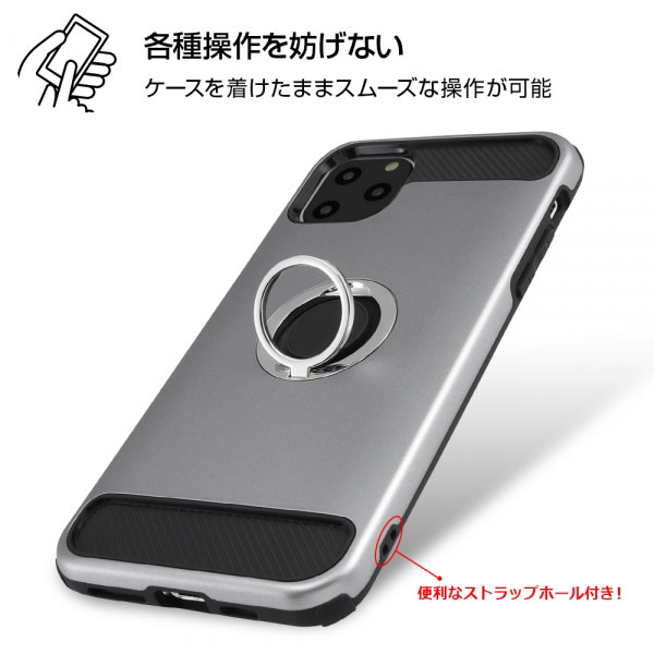 iPhone11ProMax ケース ハードケース 耐衝撃 スマホリング付き レッド