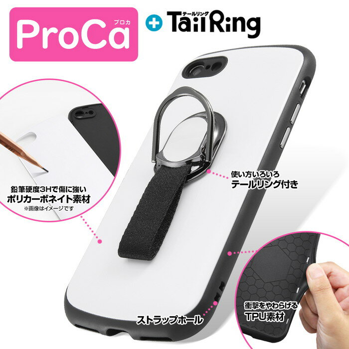 1/24-28 ポイント最大25倍 iPhone SE2 ケース スマホリング付き 耐衝撃ケース ProCa+TailRing / レッド iphonese 第2世代 iphone8 iphone7 カバー ストラップホール ストラップ アイフォン8 スマホリング バンカーリング